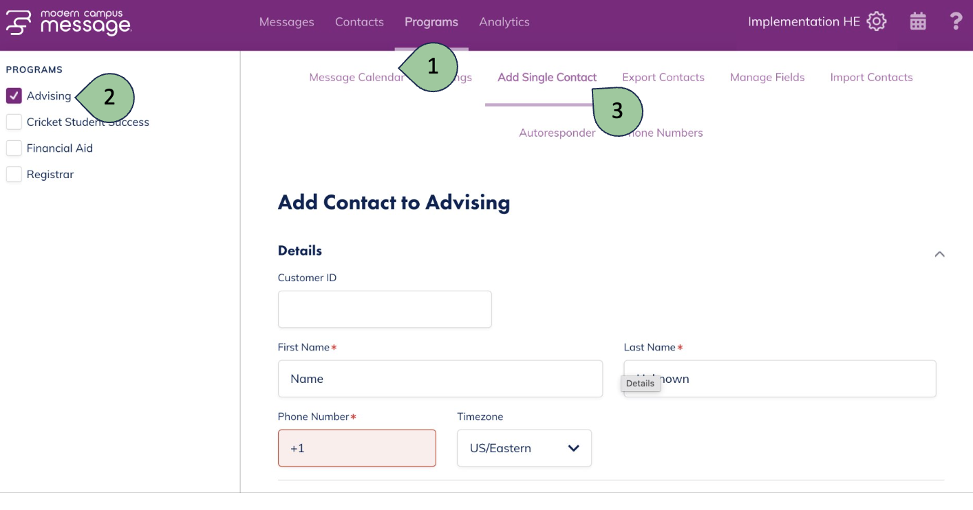 You can add a single contact directly to a program using the Add New Contact option. Make sure you have gathered permission to text any contact before adding them to your program.