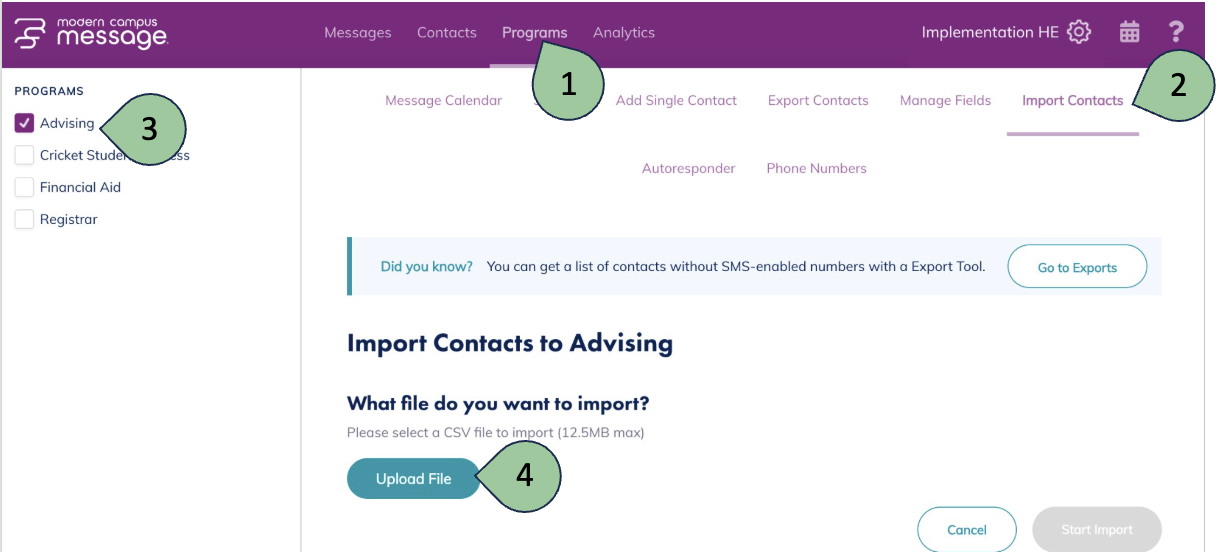 Select the Import Contacts tab.