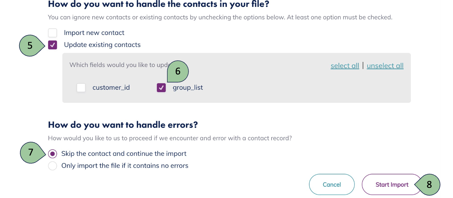 Selecting Import new contacts instead of Update existing contacts