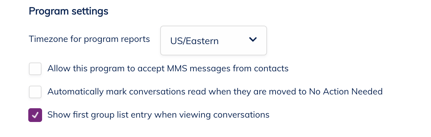 You can improve inbox visibility by displaying group information for each contact directly in your inbox. When enabled, Message shows the first group associated with a contact next to their program name, making it easier to identify and organize conversations at a glance.