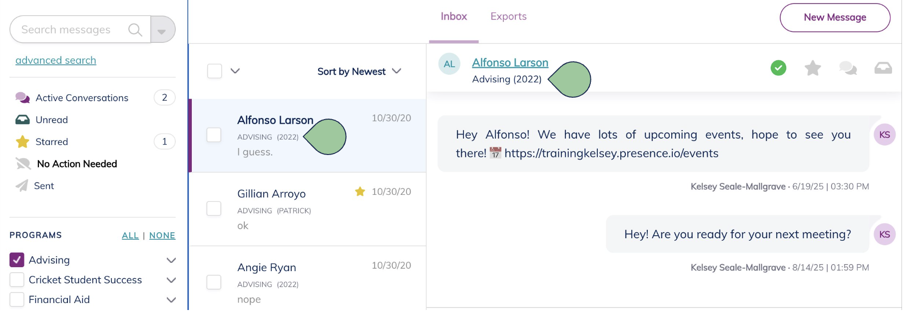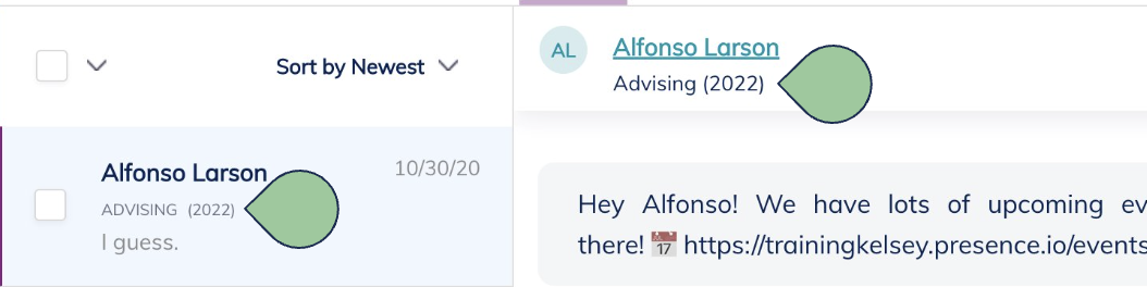 Return to your messages. You will now see each contact’s program name followed by their group in parentheses.