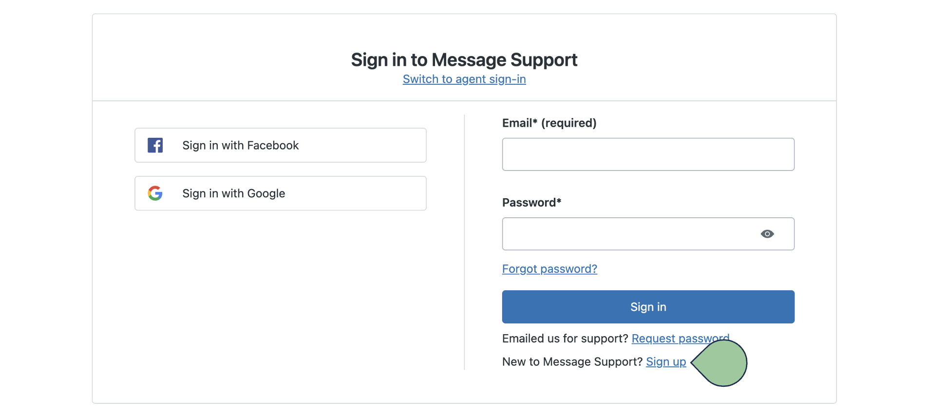 On the sign-in page, select Sign Up under New to Message Support?