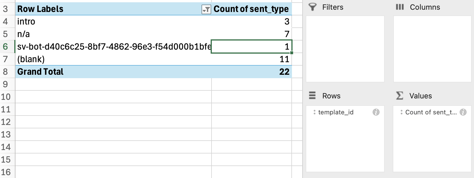 - Rows: sent_type