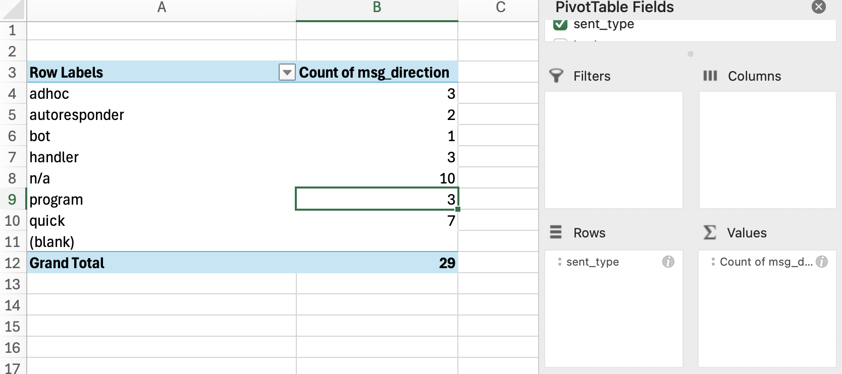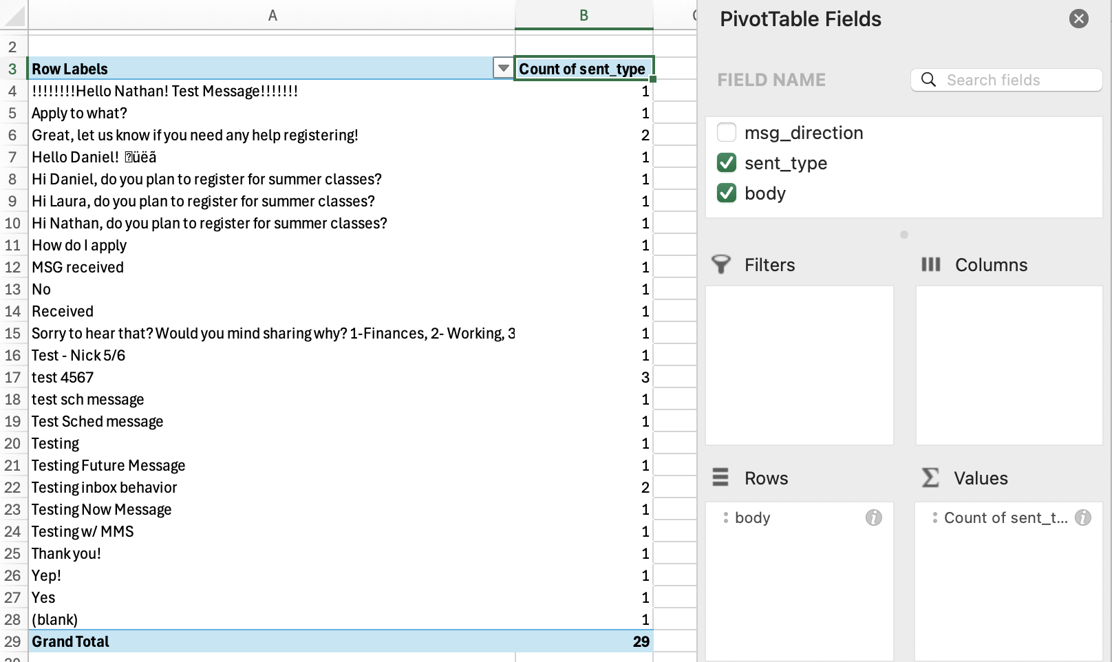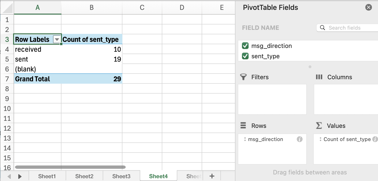 Create a pivot table with your message history report.