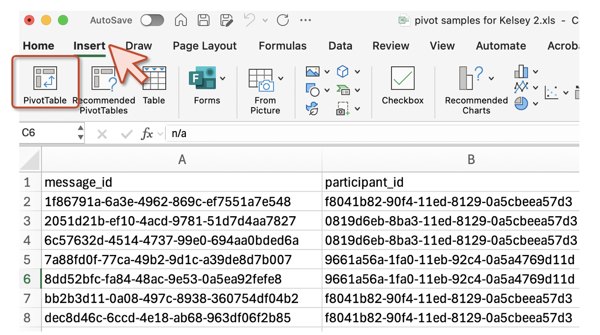 Message Pivot Table Suggestions