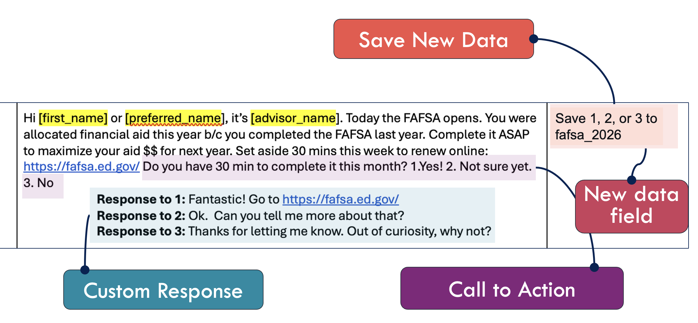By using a program message, you can ask a question and save the response to a custom field. This data is now available to download or use in a future advanced search or message condition.